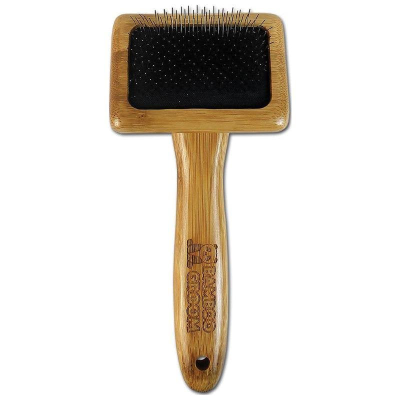 Alcott Bamboo Groom Slicker Brush with Stainless Steel Pins for Pets, Small,Black
