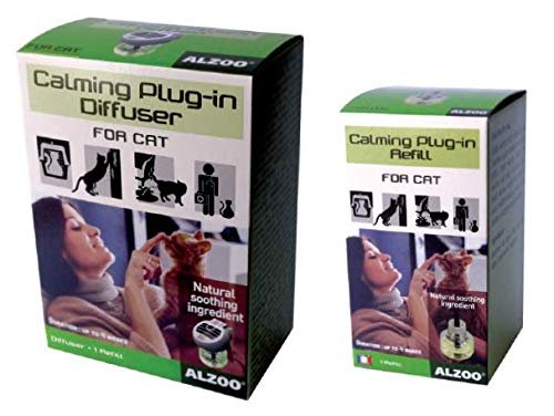 ALZOO Natural Calming Diffuser with Refill for Cats, Controlling Unwanted Behavior, Reducing Stress and Anxiety for Vet Visits, Travel, and Boarding, Made in USA
