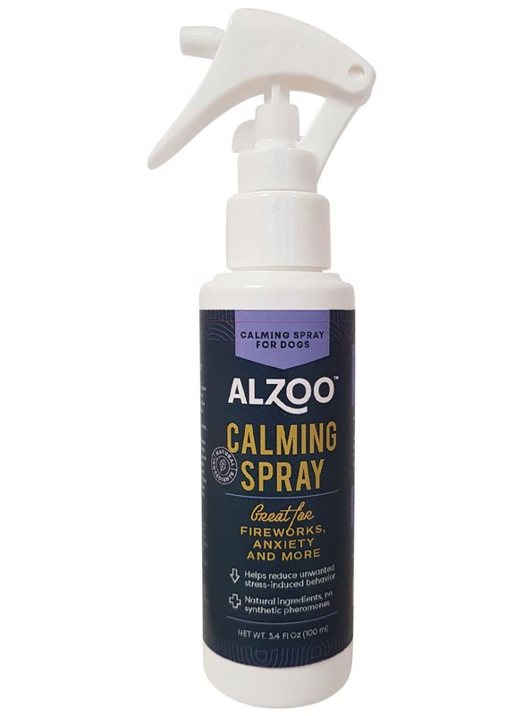 Like humans, Dogs are susceptible to Stress & Anxiety caused by a variety of situations. This stress can result in excessive barking, destructive behavior, nervousness, and excessive hair loss. Our Calming Spray helps provide comfort to Dogs experiencing stress due to fireworks, thunderstorms, veterinary visits or changes to a routing or leaving situation. With Alzoo Calming Spray's all natural ingredients, you can calm your pet without the worry of harsh chemicals or medications, and prevent destructive behavior.