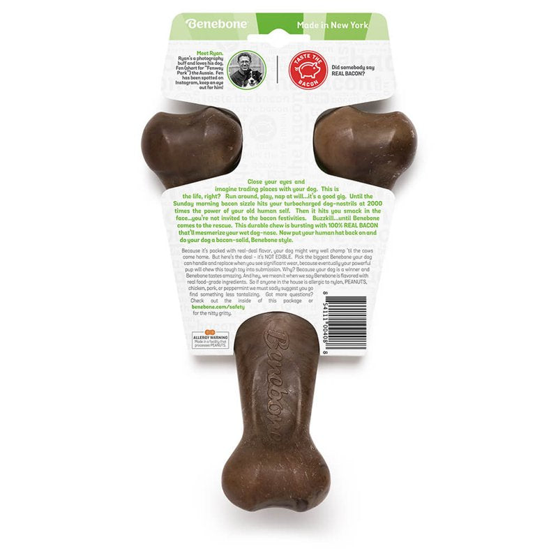 The Benebone WishboneDogs love to chew, especially on stuff that tastes like real bacon. The Wishbone is easy to handle, tastes awesome, and stands up to heavy chewing.About BeneboneAt Benebone, we started with the premise that dogs experience scent and flavor in a way we can’t even grasp. So we ditched the neon colors and loud squeaks. Inspired by a dog’s powerful sense of smell, we developed a long-lasting durable chew that’s jam-packed with real bacon. Once your dog takes a bite of our USA-made chews, he’ll be hooked.We’re Obsessed with Safety TooWonder if Benebone is right for your dog? Here’s what you need to know. Since it’s hard, it’s important that your pup has strong teeth. If you’re unsure, check with your vet. Nobody likes an unexpected trip to the dentist. Keep an eye out for wear and tear. Within a month or so, we find that most dogs chew Benebone into submission. See the wear page on our website for helpful photos to determine when to replace yours. Keep away from households with peanut or other allergies.What’s Inside?Nothing but Nylon and Real Bacon for Tantalizing Flavor