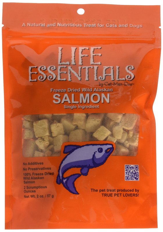 Cat Man Doo Wild Alaskan Salmon is a healthy, organic treat your pet will love CatManDoo Freeze Dried Alaskan Salmon is available in a resealable, standup bag. This naturally organic treat is another healthy way to reward your pet. These treats are completely free of grains and fillers. Derived from a single protein source, you can feel good about rewarding your pet anytime. These crunchy cubes will satisfy your cat's craving for fish and keep her begging for more Not for human consumption.