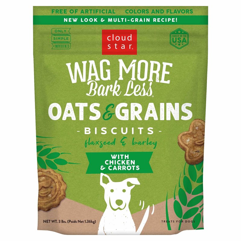 Cloud Star Wag More Bark Less Crunchy Dog Treats, Oats & Grains Chicken & Carrots, 3lbs. Bag