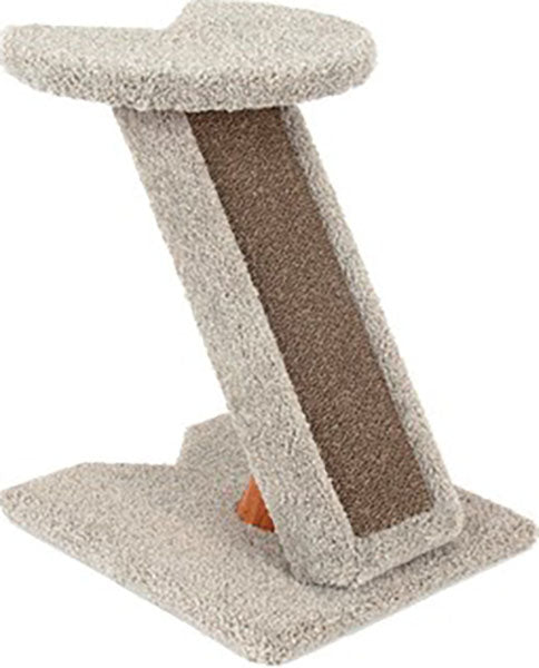 - Angled corner carpet scratching post with replaceable corrugated insert.