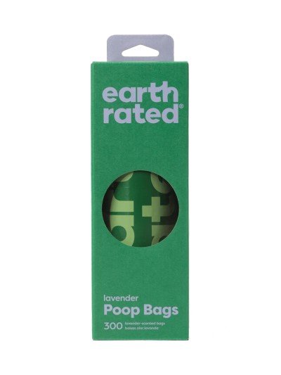 We've got dogs, and we know where your hands are going. We want them to stay safe, clean and poop-free which is why we guarantee our Earth Rated dog poop bags are 100% leak-proof, extra thick and strong!Even though our dog waste bags are super tough, they’re still easy to open and use so you’re not fumbling around when it’s time for business.This is perfect for backyard pickups and has a tissue-style dispensing box so if you just want to grab one poop bag or a bunch, you're ready to go!This value pack of poop bags for dogs contains one large roll of 300 lavender-scented bags, offering a 30% cost savings per bag.Each dog poop bag measures 8 x 13 inches, so they're big enough to fully cover your hand and sleeve during pickup with plenty of room left over to tie a secure knot when you're finished.The extra details are important to us, which is why all of our packaging and inner roll cores are made with recycled materials.We’ve managed to make these awesome bags because we love dogs and love what we do, so we hope you'll try them and let us know if you have any feedback!