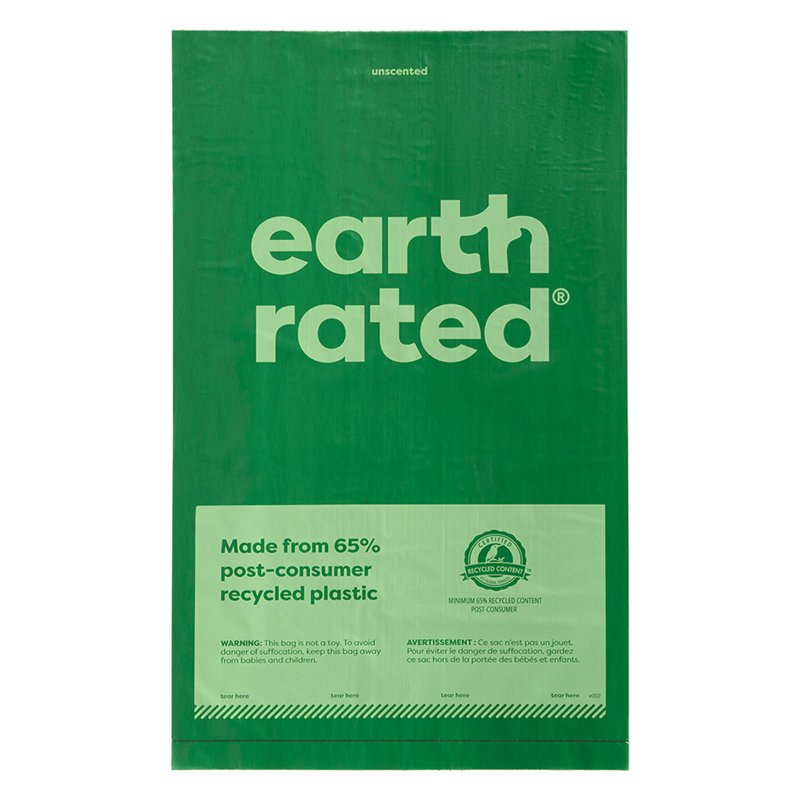 We've got dogs, and we know where your hands are going. We want them to stay safe, clean and poop-free which is why we guarantee our Earth Rated dog poop bags are 100% leak-proof, extra thick and strong!Even though our dog waste bags are super tough, they’re still easy to open and use so you’re not fumbling around when it’s time for business.This is perfect for backyard pickups and has a tissue-style dispensing box so if you just want to grab one poop bag or a bunch, you're ready to go!This value pack of poop bags for dogs contains one large roll of 300 unscented bags, offering a 30% cost savings per bag.Each dog poop bag measures 8 x 13 inches, so they're big enough to fully cover your hand and sleeve during pickup with plenty of room left over to tie a secure knot when you're finished.The extra details are important to us, which is why all of our packaging and inner roll cores are made with recycled materials.We’ve managed to make these awesome bags because we love dogs and love what we do, so we hope you'll try them and let us know if you have any feedback!