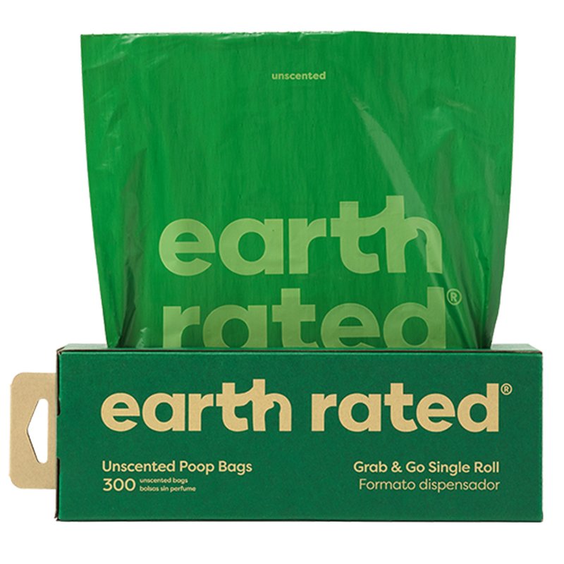 Earth Rated Dog Poop Bags, Thick Grab and Go Single Roll, Ideal for Backyard Pickups, Unscented, 300 Bags