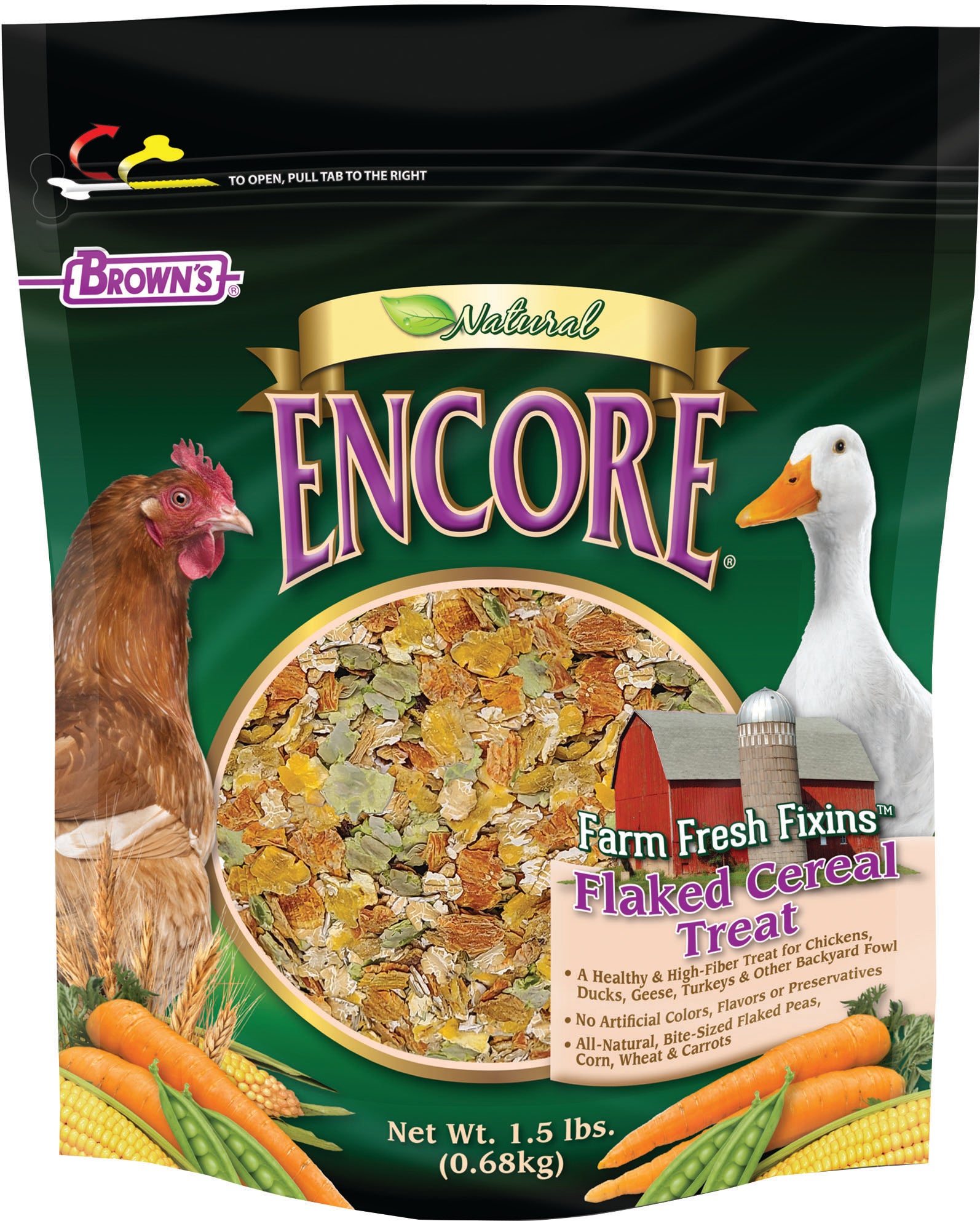 1.5 LB: Flaked peas flaked corn flaked wheat and flaked carrots.Manufacturers change packaging and ingredients. Photos and info may be outdated. We only ship new, current product.