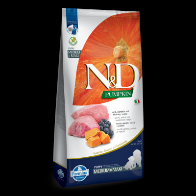 Farmina N&D Dry Puppy No-Grain Pumpkin Medium/Maxi Lamb & Blueberry 26.4 Pounds