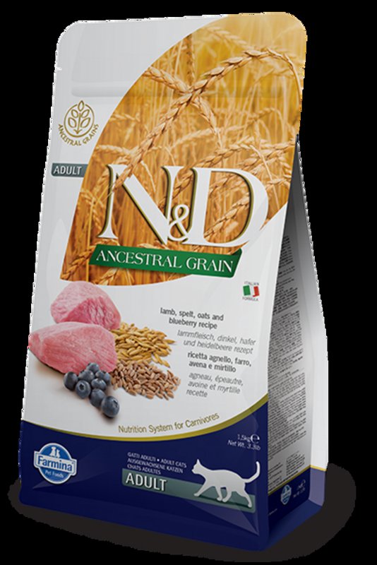 Farmina N&D Grass-Fed Lamb & Ancestral Grain Recipe is formulated to meet the nutritional levels established by the AAFCO Cat Food Nutrient Profiles for all life stages.