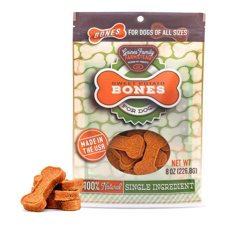 Gaines Family Farmstead Sweet Potato Dog Bones, All-Natural, Grain Free Dog Treats for All Ages & Breeds, Great for Training and Rewards, Made in USA, 8 Ounce Bag