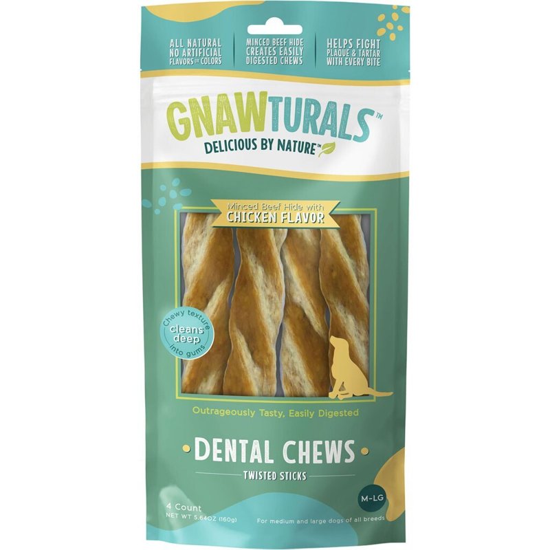 Gnawturals Dental Chews Twisted Sticks | for Large Dogs | Natural Scrubbing Action to Fight Plaque and Tartar While Refreshing Your Dog's Breath (4 Sticks, Chicken)