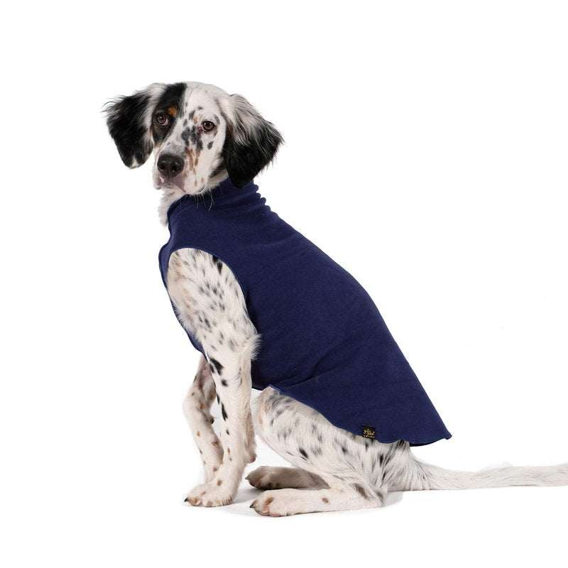 Gold Paw Stretch Fleece Dog Coat, Stretchy Pet Sweater, Machine Washable Pullover for Winter and Fall, Navy, Size 18