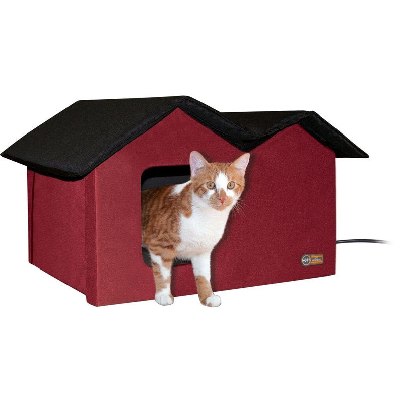 K&H Pet Products Extra-Wide Outdoor Kitty House, 26.5" x 15.5" x 21.5" (Red/Black, Heated)