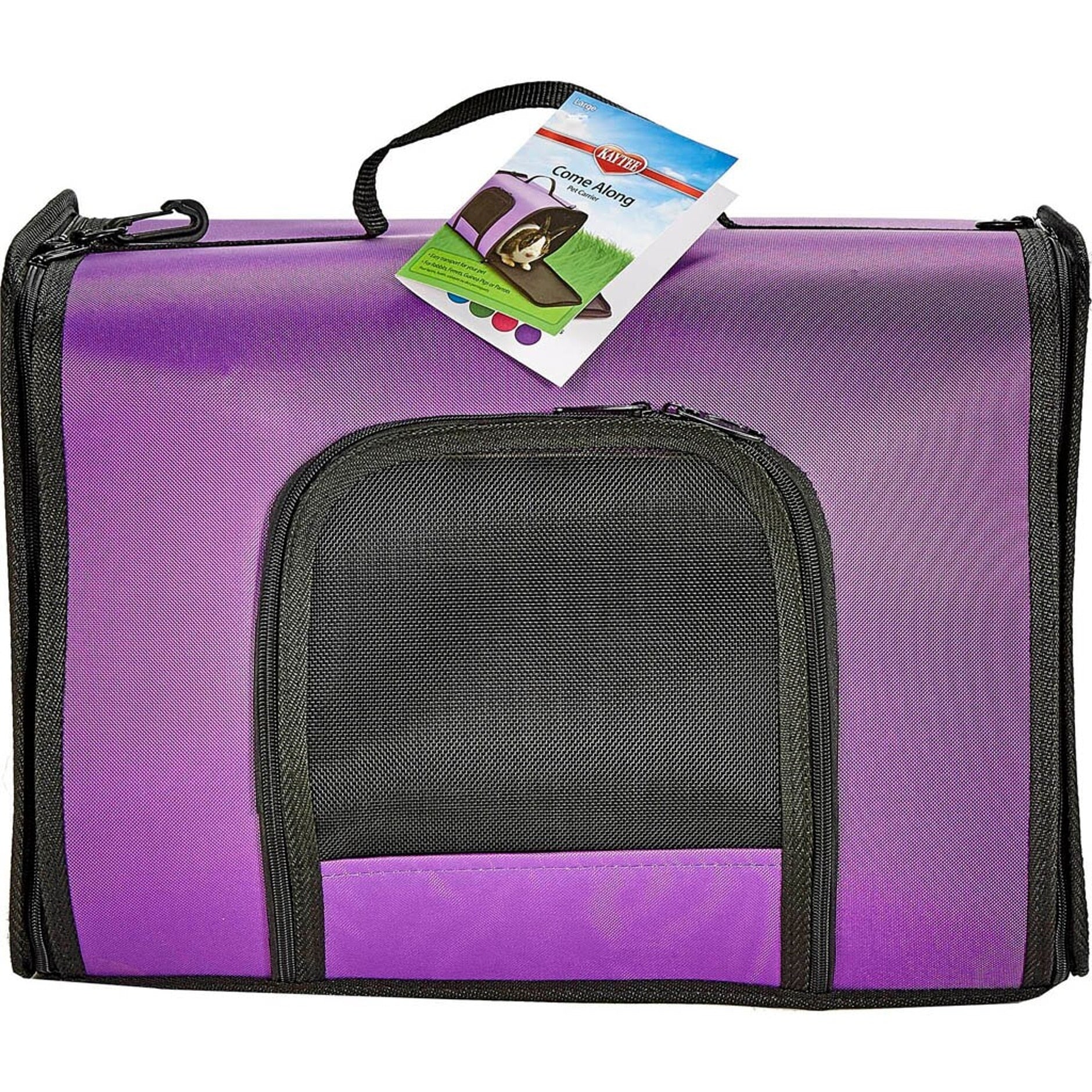 - Fabric covered carrier features fresh air vents, a handy storage spot.