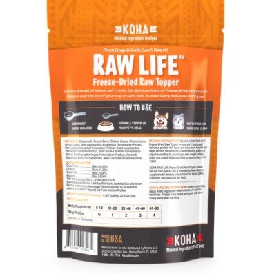 KOHA Raw Life Freeze-Dried Raw Topper Chicken, for Dogs and Cats, High Protein Meal Topper for Picky Eaters with Probiotics, 8oz Bag