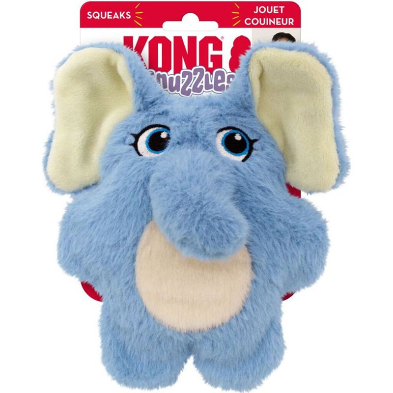 KONG Snuzzles Elephant is plump full of fun with a full body squeaker that calls out with a long, loud squeak. The dense mouthfeel rewards appropriate chewing with every bite. The super soft plush invites soothing snuggles. Ideal for indoor fun, the flat shape is ideal for small dogs to grab.