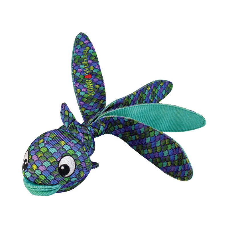 The KONG wubba finz has long Floppy tails that make it easy for tugging and super fun for your dog to Shake, satisfying natural thrashing instincts. Two balls inside help KONG wubba finz bounce and squeak, extending games of catch and release for tons of healthy, active play. This flying fish is made to soar through the air and launch your dog into a fetching frenzy.