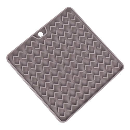 Messy Mutts & Cats Silicone Reversible Interactive Feeding and Licking Mat | 5.5†x 5.5†| Slow Feeder for Boredom & Anxiety | Lick Pad for Cats & Small Dogs | Grey