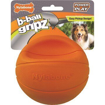 Power up playtime with Power Play Dog Toys from Nylabone! The durable B-Ball Gripz is perfect for pet parents seeking a new and exciting take on a classic basketball for dogs. Strategically created with our four-legged friends in mind, this ball toy for dogs is designed with a unique indented shape that creates a handle for both dogs and their human play buddies to pick up, carry, and roll. Made of durable rubber with an authentic basketball feel, this fun dog toy keeps its shape, even in the most extreme play! Plus, the innovative design offers mesmerizing bounce-and-roll action. Bounce crazier, grip better, and play harder with the Original B-Ball Gripz basketball toy for dogs!