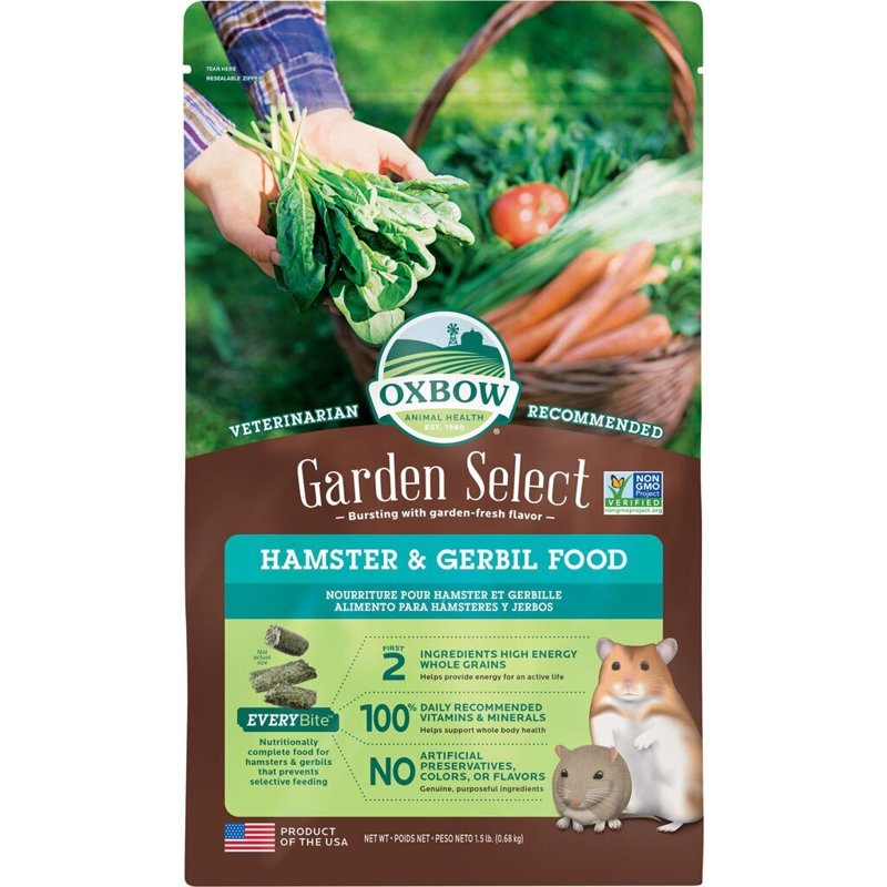 Oxbow Animal Health Garden Select Hamster And Gerbil Food, Garden-Inspired Recipe for Hamsters And Gerbils, Non-GMO, Made In The USA, 1.5 Pound Bag