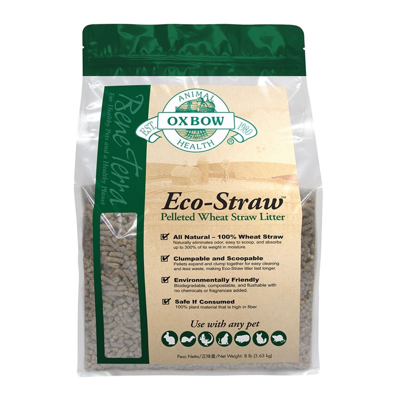 All-natural, dust-free litter from Oxbow! Eco-Straw is the environmentally-friendly litter, made only of 100% wheat straw. Eco-Straw is twice as absorbent as newspaper-based litter and absorbs 300% its weight in moisture.