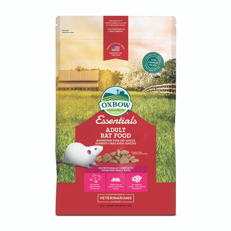 Oxbow Essentials Adult Rat Food - All Natural Adult Rat Food - Veterinarian Recommended- Made in the USA- Rich in Natural Vitamins & Minerals- No Artificial Ingredients- 3 lb.