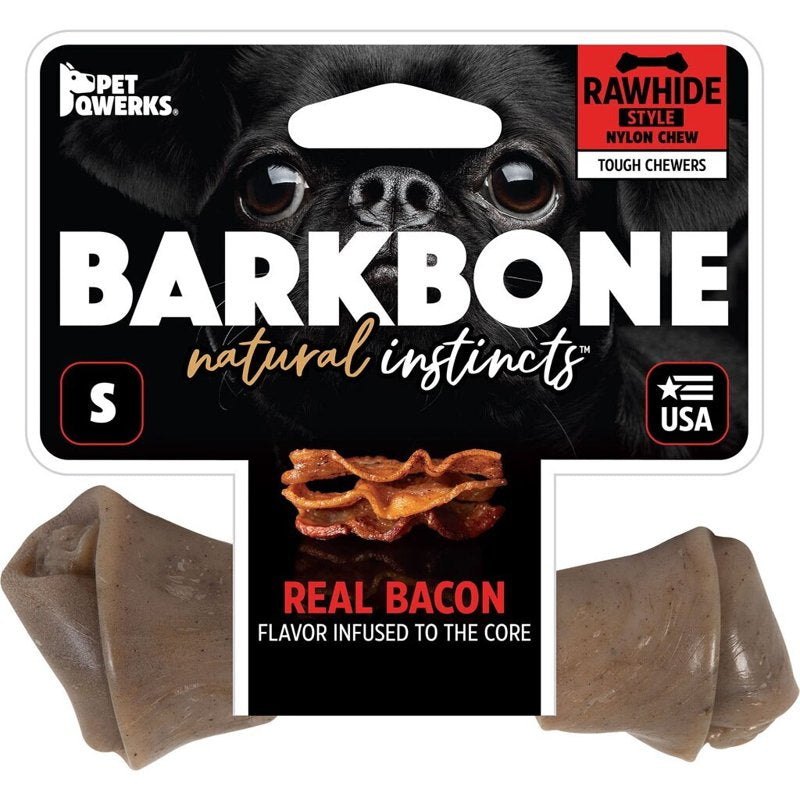 Pet Qwerks Nylon Rawhide BarkBone - Durable Dog Toys for Moderate & Aggressive Chewers - Infused Bacon Flavor - 6"