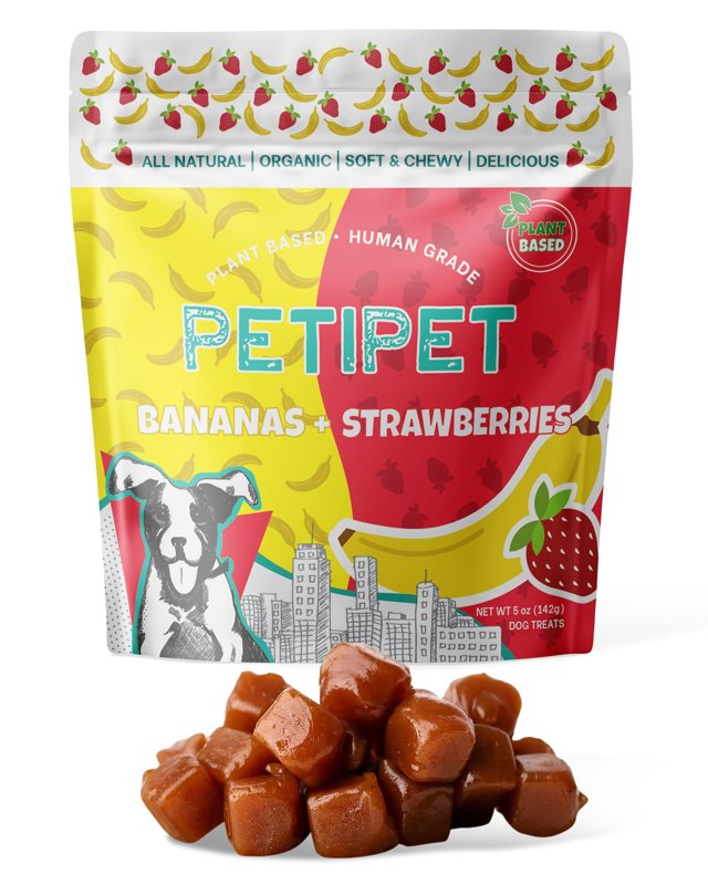 PETIPET Bananas+Strawberries Plant-Based Fruit Dog Treats 5oz - Strawberry, Apple, Banana Dog Treats - Healthy, Vegetarian, Vegan - Organic Ingredients, Low-Protein, Hypoallergenic, Gluten-Free