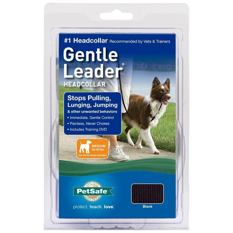 PetSafe Gentle Leader No-Pull Head Collar for Dogs, Dog Head Collar - The Ultimate Solution to Pulling, Padded Nose Loop, Quick-Snap Neck Strap, Dog Head Halter, Medium - Black