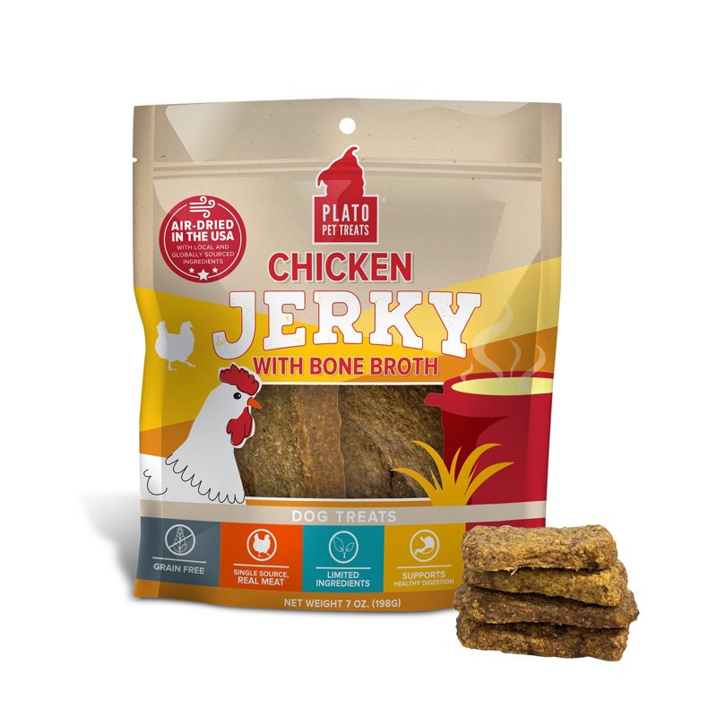 PLATO Pet Treats Air Dried, Real Meat, Chicken Jerky with Bone Broth Dog Treats, Made in The USA, Grain Free, 7oz