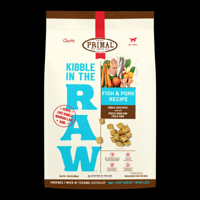 Primal Kibble in the Raw Freeze Dried Dog Food Fish & Pork, Complete Diet Scoop & Serve Healthy Raw Dog Food, Crafted in the USA (9 lbs)
