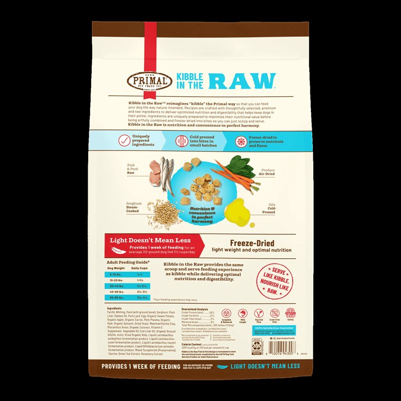 Primal Kibble in The Raw Freeze Dried Dog Food Fish & Pork, Complete Diet Scoop & Serve Healthy Raw Dog Food, Crafted in The USA (9 lbs)