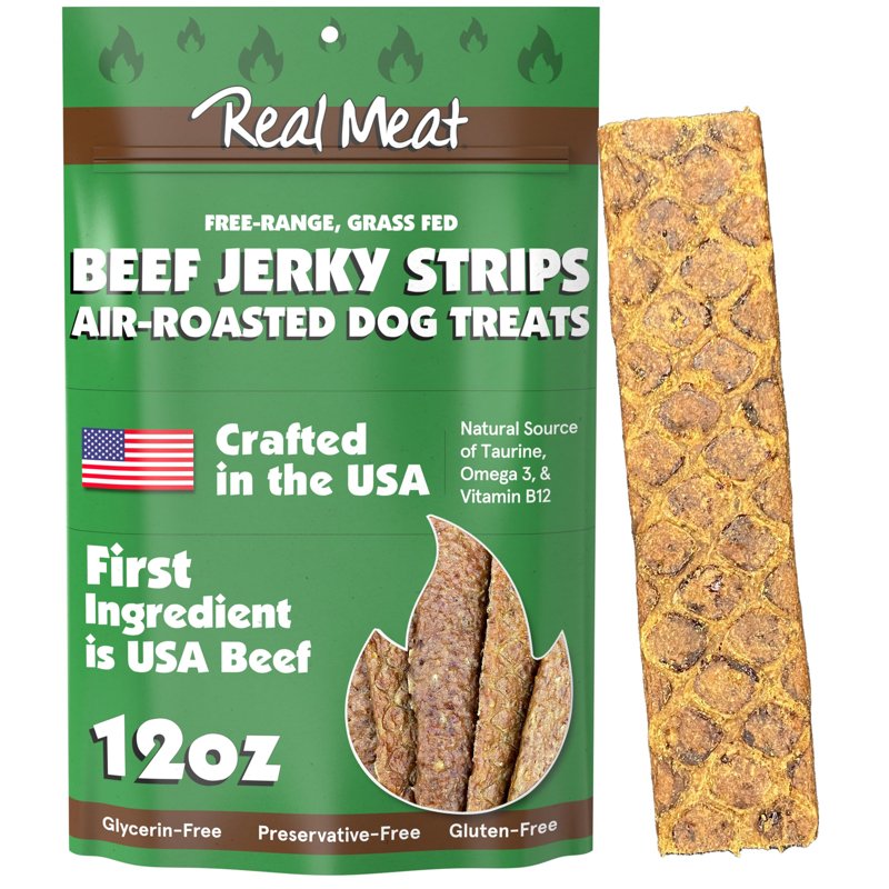 Real Meat Dog Treats - 12oz Bag of Human-Grade Air-Roasted Strips of USA Beef Jerky for Dogs - Grain-Free & All-Natural Beef Jerky Dog Treats Made with Free-Range, Grass-Fed USA Beef
