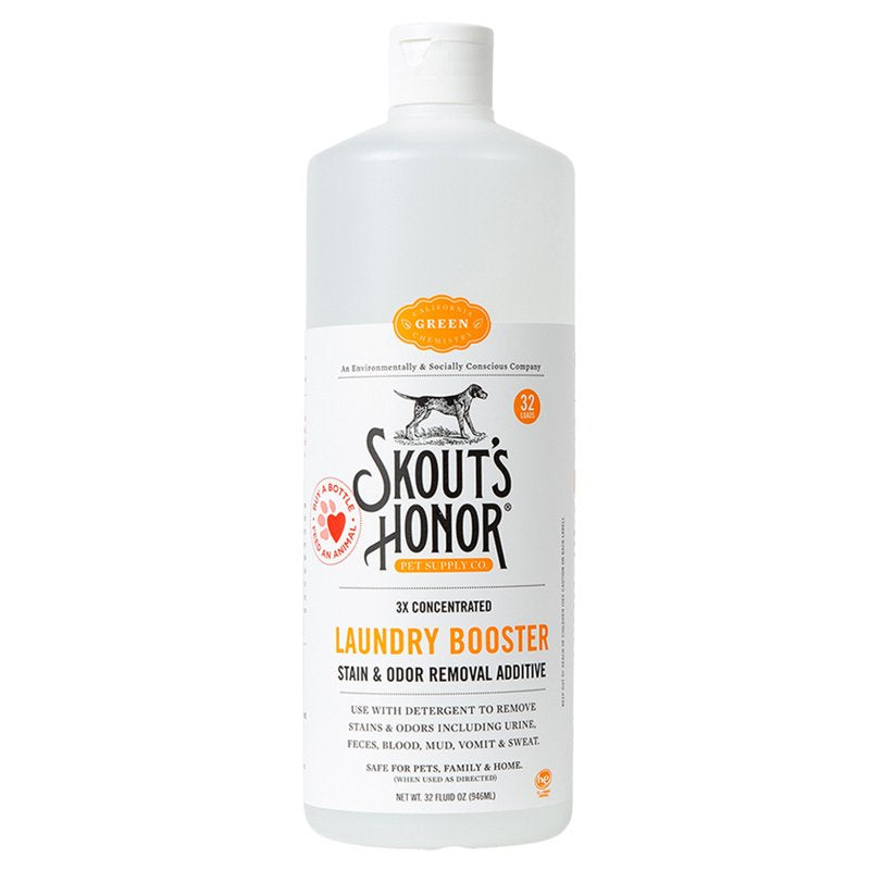 Skout's Honor Laundry Booster is great for removing pet stains and odors from pet bedding, clothing, washable pee pads and more! Use with detergent to remove stains & odors including urine, feces, blood, mud, vomit & sweat.
