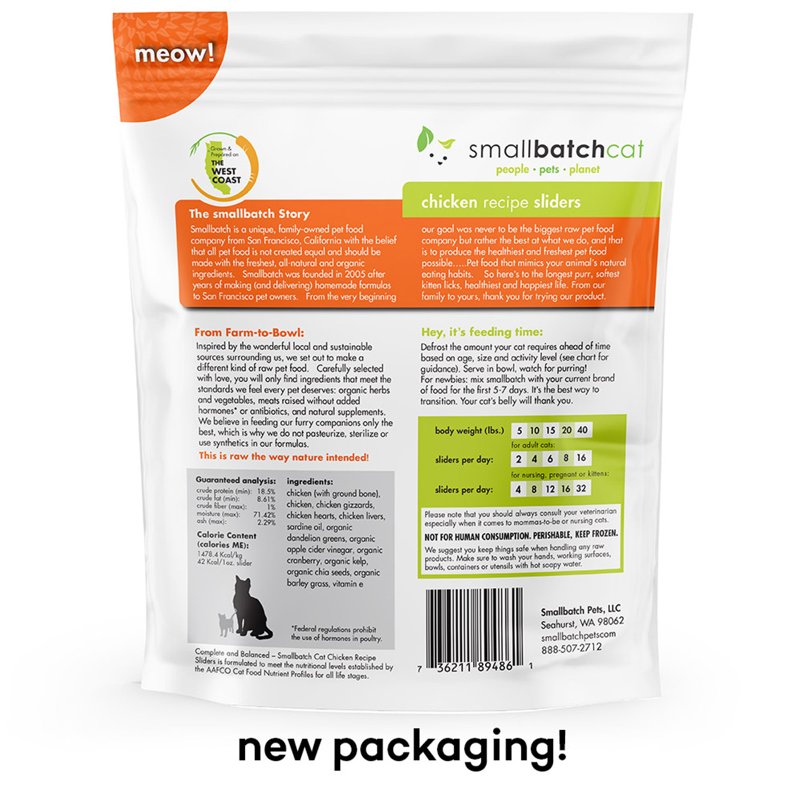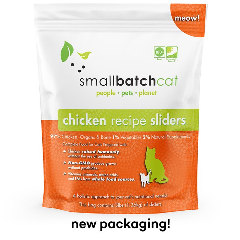 Small Batch Chicken Batch Sliders Frozen Cat Food, 3-lb