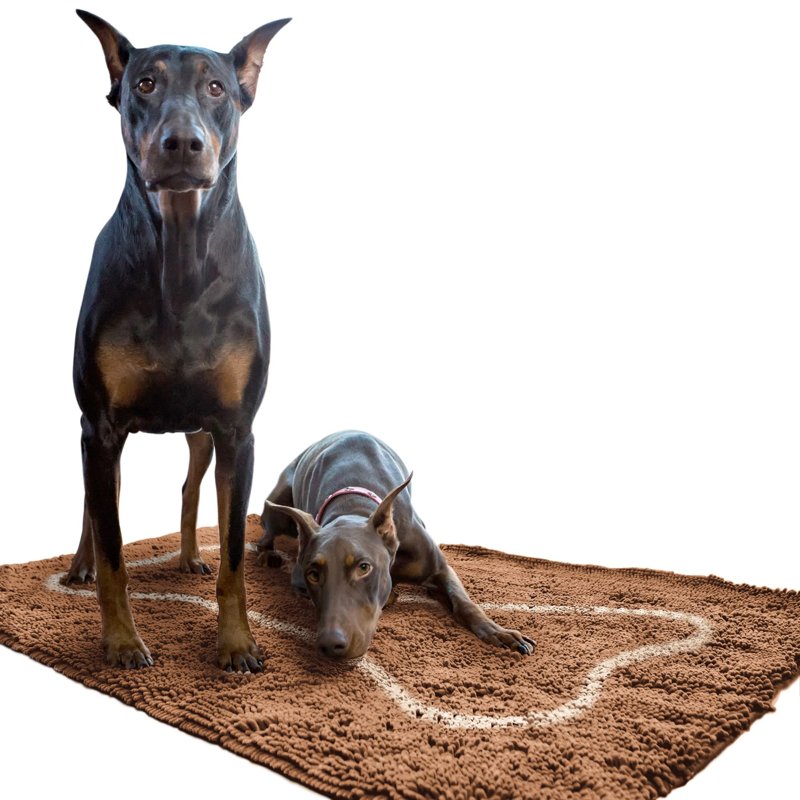 Soggy Doggy Doormat with Bone Design, Microfiber Chenille Indoor Wet Dog Mat for Muddy Paws and Drying, Ultra-Absorbent Dog Mats for Sleeping and Lounging, Caramel Brown/Oatmeal Bone