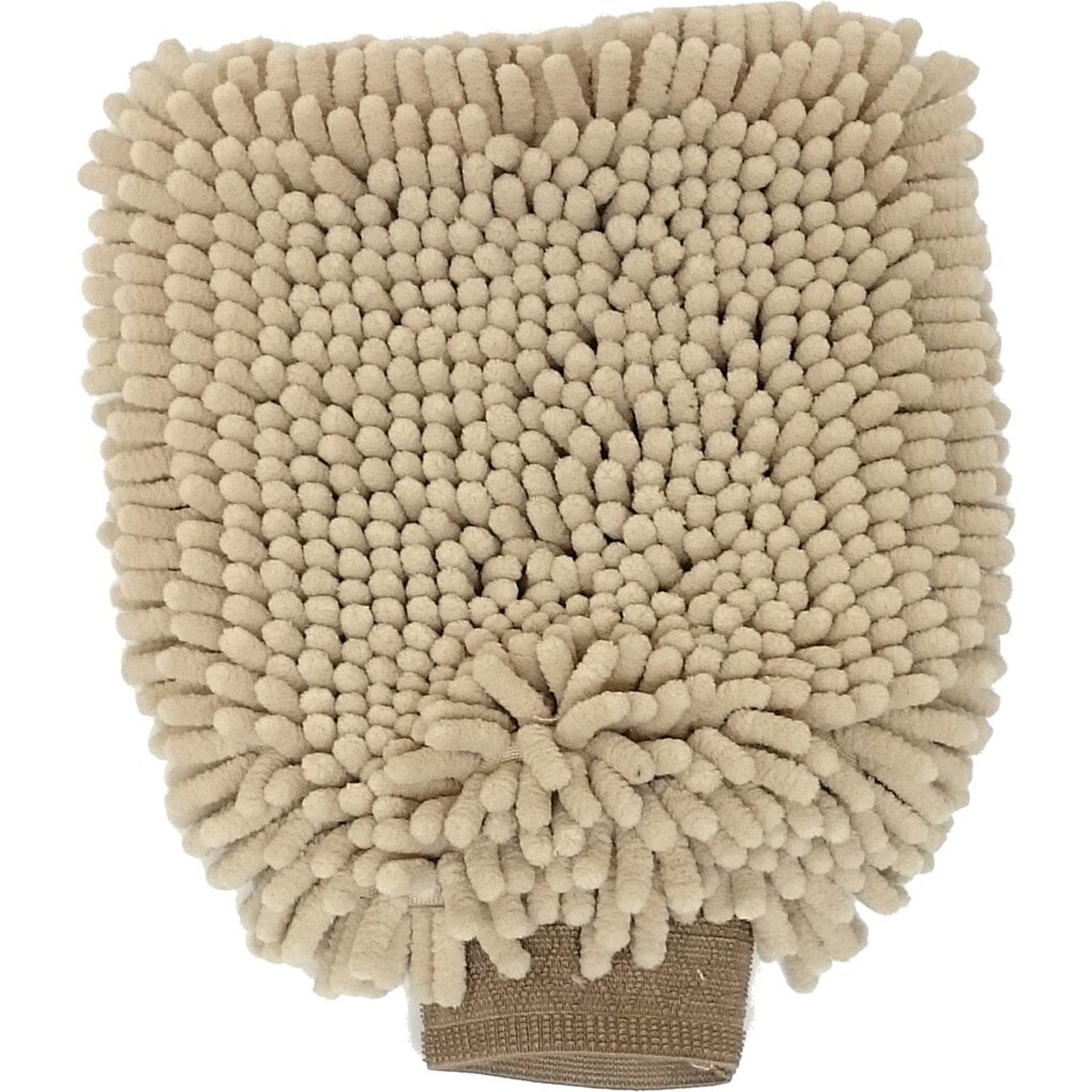 - Super absorbent micro fiber and chenille featuring an elastic wrist band that keeps the mitt on your hand for a perfect fit.