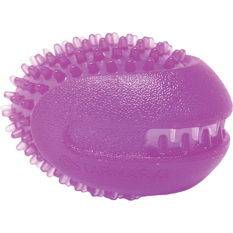 Starmark Snapper Trapper Venus traps treats inside with interlocking teeth and releases them while your dog plays. Stuff or freeze any small treats or kibble inside, and the spiny surface helps clean teeth and massage gums. The durable material is puncture and tear resistant for strong chewers.