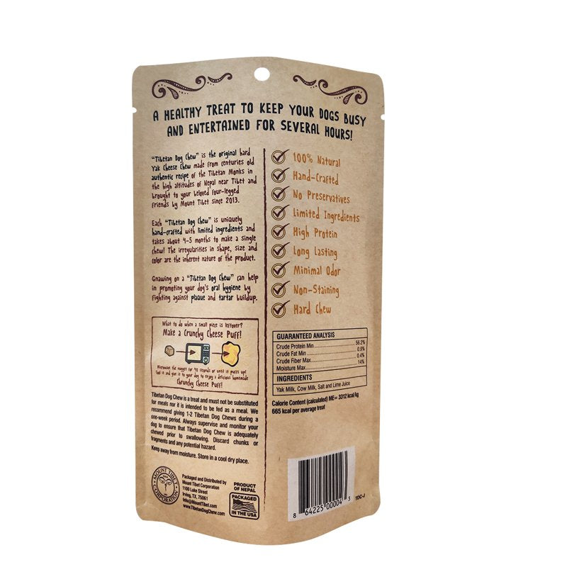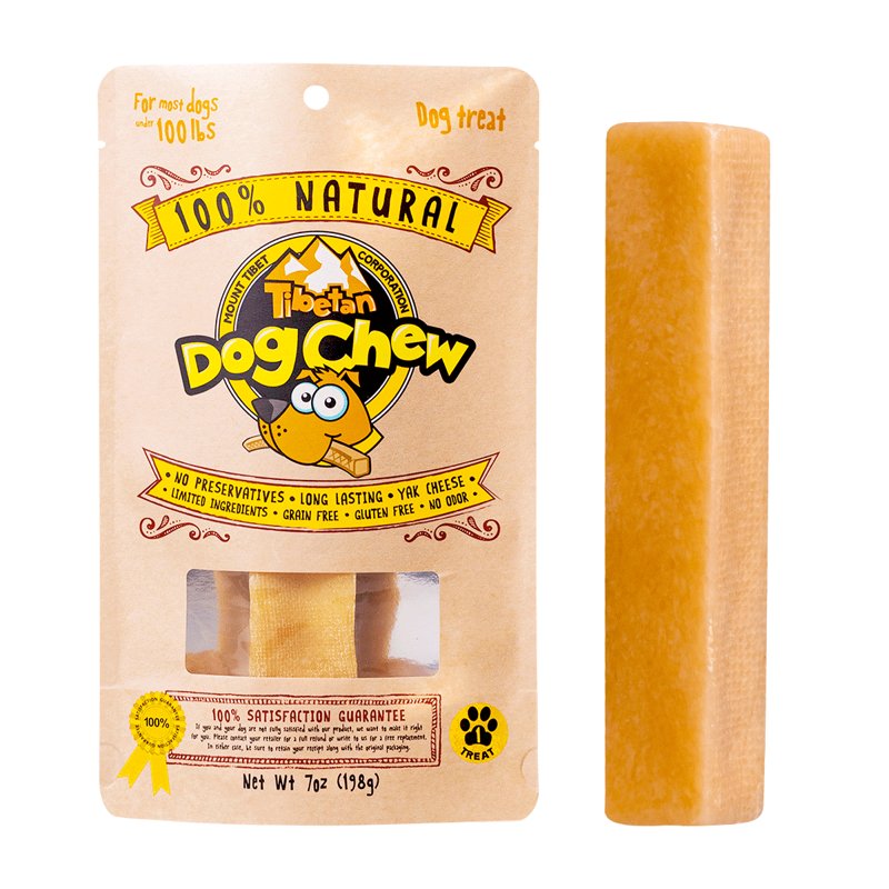 Keep your dog busy and happy whenever you are out of the house! Do you want your dog to be calm and peaceful? Do you find yourself coming home from work only to find out that your new pair of shoes have become a snack for your dog? Are you're a pair of slippers missing? Are the contents of your trash can emptied out in your living room? Start Using Tibetan Dog Chew's Yak Milk Chews, the Chew sticks that will keep your Pooch behaved, happy, and preoccupied for hours! * PREMIUM 'A' Grade Dog Chews - These PREMIUM GRADE hard cheese dog chews are protein packed and contain very minimal fat and moisture. These will last for several hours of chewing even for aggressive chewers. Our Himalayan yak cheese treats also have a long shelf life compared to other brands with softer chews that will grow mold easily due to the high fat and moisture content. * Completely Digestible and Long Lasting - High grade chews lasts up to five times longer than traditional rawhide dog chews and are easily digestible. The milk is processed to remove Lactose and make the chews very gentle for dogs with sensitive stomachs. * Keeps You're Dog Busy - this protein packed and highly nutritious edible chew treat can provide several hours of chew time for your dog. * All Natural Ingredients - These chews sticks are free from additives, chemicals, and preservatives. The product contains all natural ingredients that are 100% healthy and safe for your dogs. Our History and Mission Tibetan Dog Chew is truly an artisan cheese made from Yak milk and Cow milk. It is a kind of Gruyère cheese made from the centuries old authentic recipe created by Tibetan Monks in the Himalayan region of Nepal and Tibet, brought to your beloved four legged friends by the Mount Tibet Corporation.