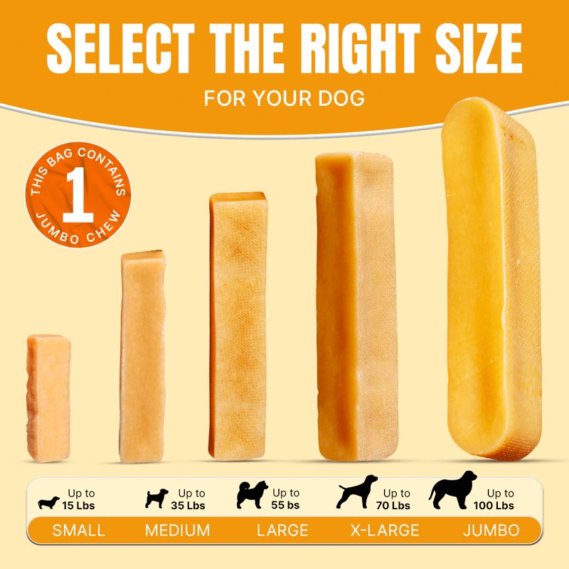 Tibetan Dog Chew Yak Cheese Sticks - Natural, Handmade Treats for Jumbo Dogs, Long-Lasting Entertainment, Perfect for Aggressive Chewers, Rawhide-Free, Grain-Free, Gluten-Free (1 Chew, Jumbo)
