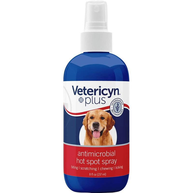 Vetericyn Plus Hot Spot Spray for Dogs Skin Sores and Irritations | Itch Relief for Dogs and Prevents Chewing and Licking at Skin, Safe for All Animals. 8 Ounces
