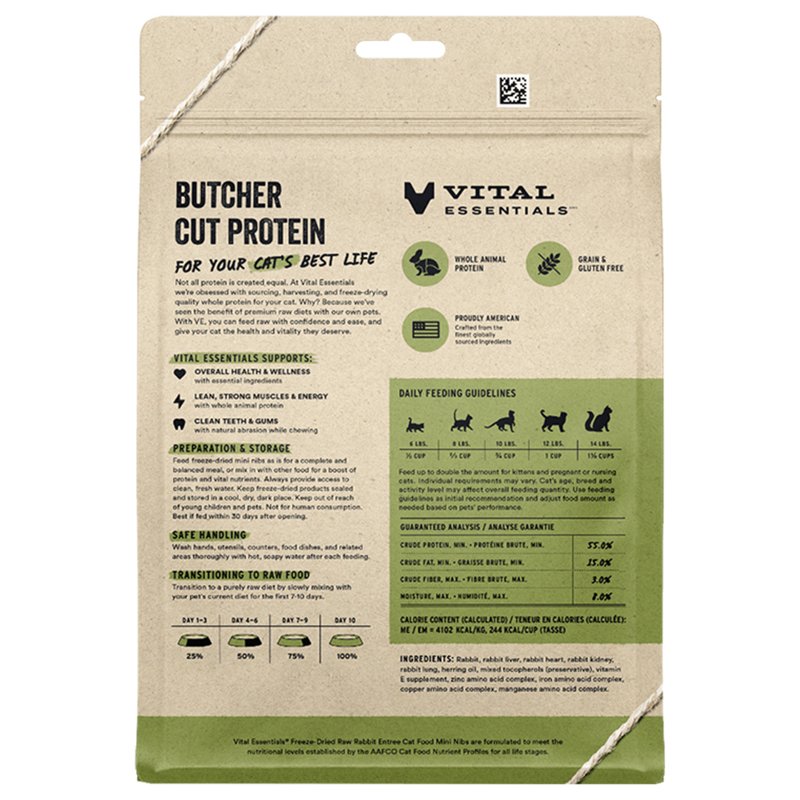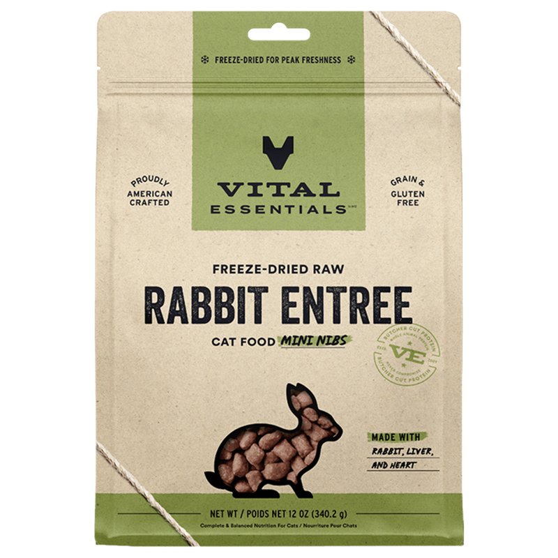 Vital Essentials Freeze Dried Raw Cat Food, Rabbit Mini Nibs Entree, 12 oz