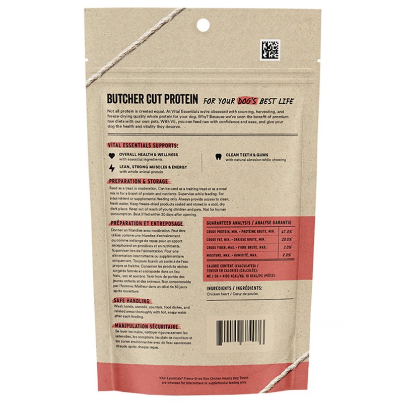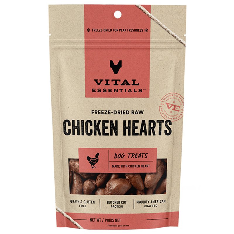 Vital Essentials Freeze Dried Raw Single Ingredient Dog Treats, Chicken Hearts, 1.9 oz