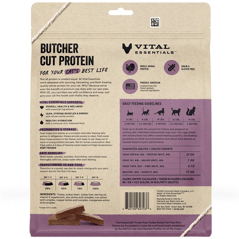 Vital Essentials Turkey Entrée Mini Patties Frozen Raw Cat Food