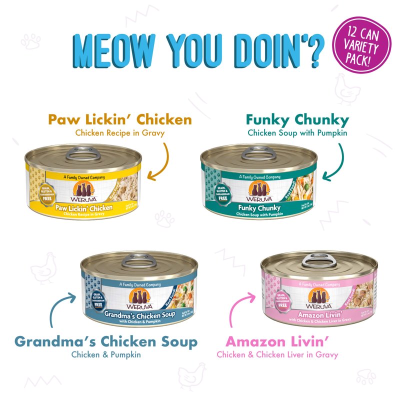 Weruva Classics Meow You Doin'? Variety Pack Wet Cat Food, 5.5 oz, Count of 12