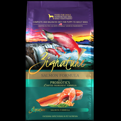 Zignature Salmon Formula features high-quality salmon as the main ingredient, includes wholesome ingredients like peas and chickpeas, and is fortified with probiotics to help support gut health. Salmon is a lean protein rich in Omega-3s, which support the immune system and aid in reducing inflammation. Salmon may be an excellent option for dogs looking to maintain healthy skin and coat!