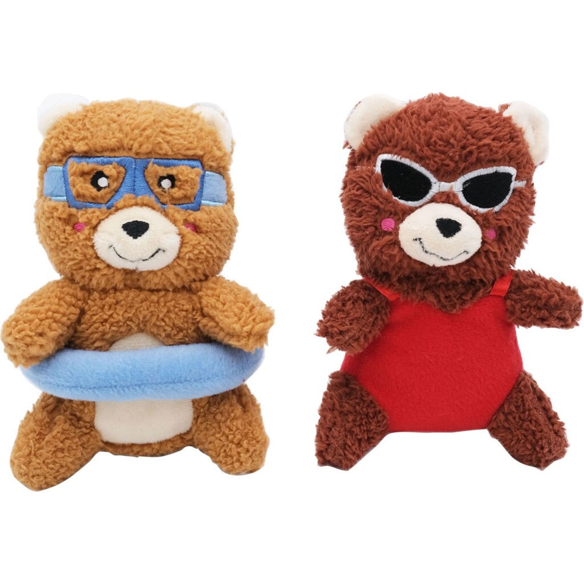 - Includes two soft and cuddly Poolside Fun bears decked out in summery accessories for some squeaky fun in the sun.